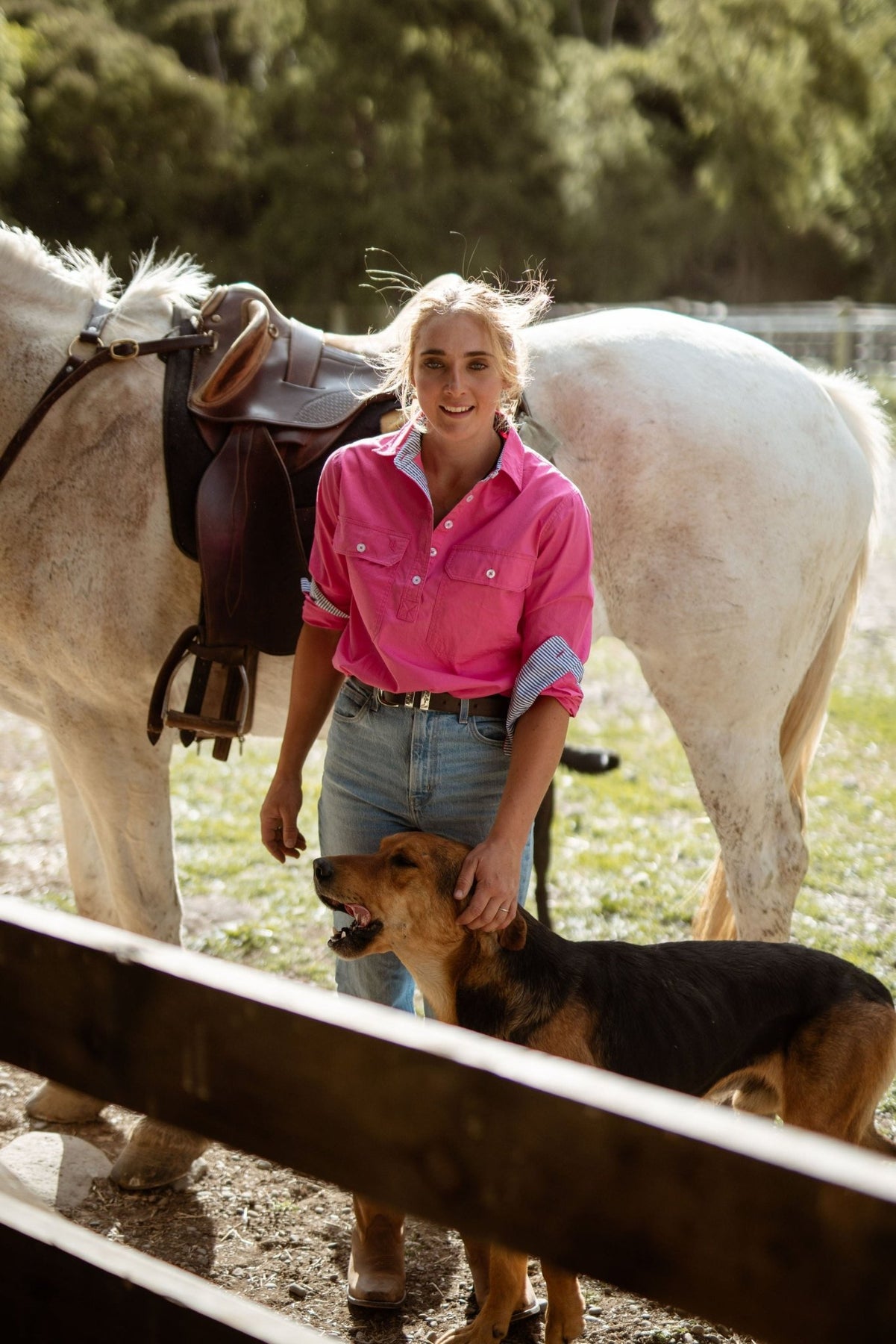 Whether it’s long sleeves rolled up for fencing or a short-sleeve version on a hot summer day, these shirts have become part of the rhythm of rural life. Designed with movement, durability and a touch of confidence in mind, they’re the everyday uniform for women who get things done from paddock to pub, school gate to stock truck.